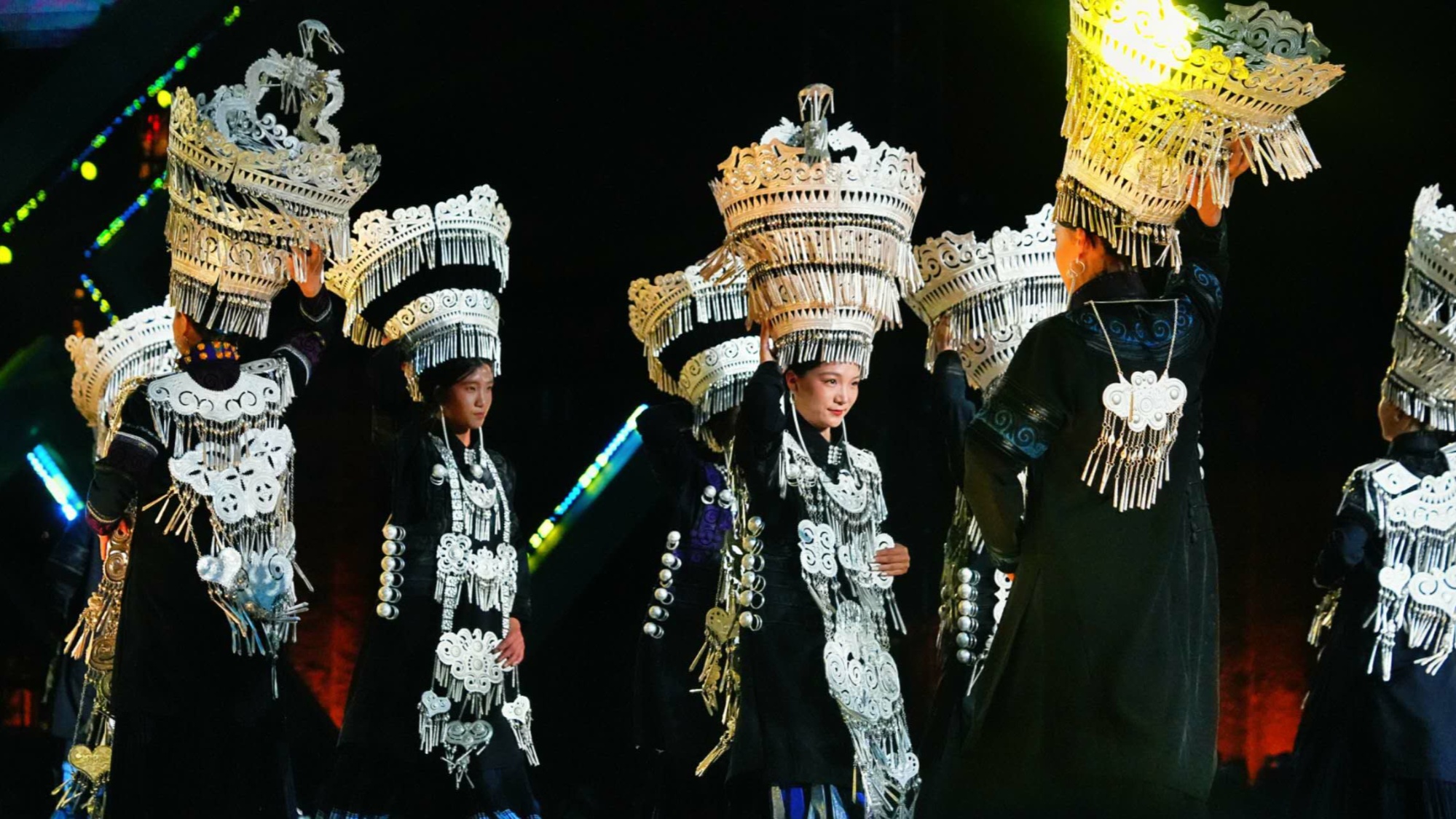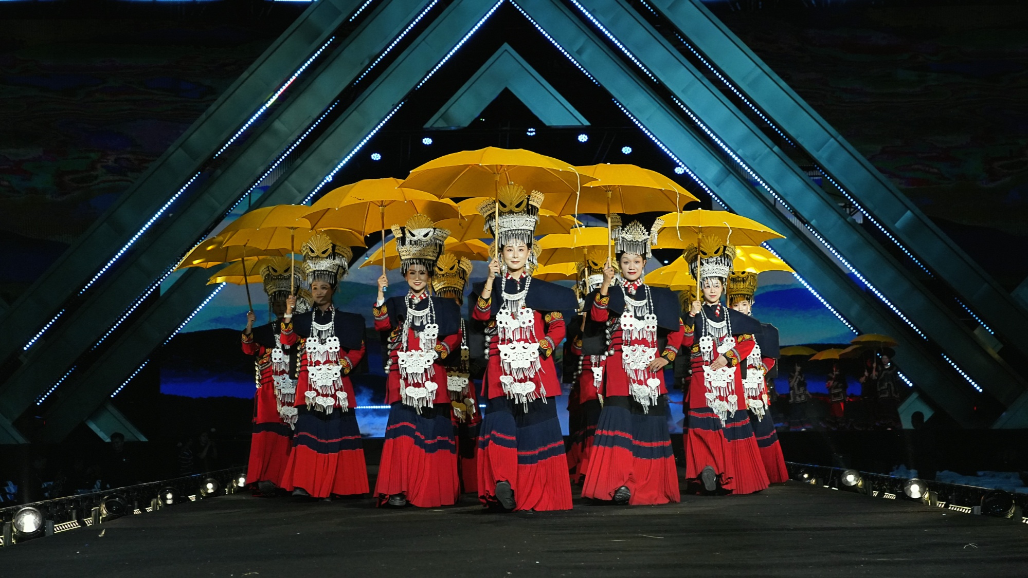 在“节日的生命欢歌”中,擦尔瓦、深蓝披毡等民族特色服饰依次登场,配合《朵洛荷舞》《口弦》等诗歌与非遗表演,再现火把节、彝族年等传统节庆的欢腾场面。在“民族的世界表达”中,改良服饰与银饰设计惊艳亮相,展现出布拖文化在守正创新中走向国际舞台的自信姿态。